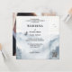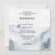 Um convite para casamentos no inverno sonhador que apresenta uma cena de paisagem de montanha de cor d'água com pinheiros e névoa nebulosa. Um modelo de código QR opcional é adicionado para sua conveniência. Na parte de trás está sua própria foto personalizada.