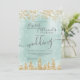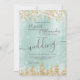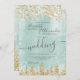 Hora de comemorar seu tema de casamento da terra maravilhosa do inverno com este luxo flocos de neve com brilho dourado faíscas e floresta de pinheiros dourados em um elegante festivo fundo metálico verde azul-gelo, com uma tipografia moderna e legal.