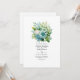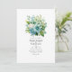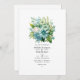 O convite para o casamento floral de verdes azuis. Ideal para um casamento no inverno. O código QR no verso direciona para o seu local de casamento onde o pessoas pode aprender mais e rsvp.