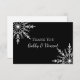 Envie uma mensagem calorosa de obrigados e apreciação por presentes recebidos após uma festa de noivado, chá de panela ou casamento de dezembro, janeiro ou fevereiro com os elegantes Flocos de Neve Pretos e Brancos no Casamento no inverno Preto. Nota: Este inverno festivo e costume, obrigado a você, nota que apresenta intrincados flocos de neve brancos adorando os cantos com um fundo preto.