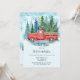 Adicione um encanto confortável ao seu casamento no inverno com este design de cor da água rústica apresentando um clássico caminhão de safra vermelha adornada com terras e luzes festivas. O caminhão carregar pinheiros cobertos por neve e se coloca contra um pano de fundo sereno de floresta com delicados flocos de neve azuis a derivar de cima. Perfeito para convites de casamento no inverno, salve as datas, a sinalização ou as placas de obrigado. Esta design romântica e nostálgica captura a magia de uma celebração de neve cheia de amor e elegância rústica. Hubby e wifey para combinar!
