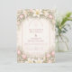 Um design de jardim romântico e suave com tulipas rosa, lírios cremosos e folhagens delicadas dispostas em uma moldura floral refinada. A composição combina tons de marfim arejado com flores pastéis sutis para um visual elegante e atemporal. Perfeito para celebrações de primavera e verão, este design parece fresco, gracioso e lindamente discreto. Personalize o texto para criar um souvenir sofisticado para o seu dia especial.