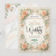 Convite Casamento no Jardim Floral em Pastel Pêssego e Ver