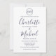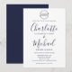 Com um nó de corda de navio e nomes de estilo assinatura, este convite de casamento náutico elegante pode ser personalizado com suas informações em letras azul marinho chic. Projetado por Thisisnotme©