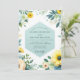 Adote uma atmosfera fresca e arejada com este lindo design botânico pintado. Botões de ouro amarelo canário e delicadas flores brancas são artisticamente arranjados com folhagens em turquesa empoeirada e verde sage. A estética suave aquarela cria um sentimento romântico e caprichoso, perfeito para uma união alegre de primavera ou verão.