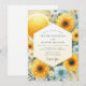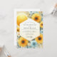 Capture a radiosa calidez de um dia de verão com este deslumbrante arranjo artístico. Girassóis dourados vibrantes explodem de alegria ao lado de delicadas flores silvestres azuis e brancas. Uma representação pictórica de um céu banhado pelo sol fornece um belo pano de fundo para a luxuriante cena botânica, criando uma atmosfera alegre e romântica.