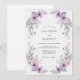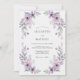 Cósmo lavanda suave e flores de anêmona são pintados com pinceladas delicadas de aquarela neste design arejado. Uma paleta de lilás, roxo e verde sage poeirento evoca uma atmosfera romântica e pacífica. A estética é suave e etérea, tornando-a ideal para um casamento de primavera sazonal. Cada folha e pétala é renderizada com detalhes finos, capturando a beleza natural de um prado em flor.