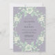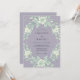 Um fundo roxo lavanda suave é decorado com um arranjo exuberante de rosas marfim e folhagens verde-sage. O estilo aquarela e os elementos florais delicados criam uma atmosfera serena e romântica. Essa estética etérea é realçada por uma paleta pastel, tornando-a ideal para um evento inspirado na natureza na primavera ou no verão.