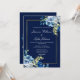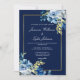 Convite Casamento Noturno Elegante com Flores em Azul Nava