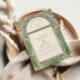 Este elegante design de casamento apresenta uma exuberante estrutura floral Art Nouveau com oliva macia e sotaques verdes. Inspirado em gravuras botânicas e em filmes europeus antigos, é perfeito para uma celebração romântica e eterno.