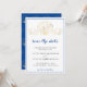 Este design elegante à beira-mar apresenta uma concha do mar estilosa em ouro e ondas com uma borda azul. Reverte para o padrão de concha de ouro em fundo azul. Perfeito para casamentos com tema de praia, verão ou náutico. Design © Rosalind Moore, Cherry Lane Designs.