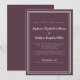 Convite para Casamento Virtual com transmissão ao vivo apresenta um design contemporâneo simples e minimalista com uma borda de quadro duplo em branco sobre um fundo roxo cassis sólido. A redação tradicional fornece sofisticação atemporal e moderna. Personalize o design do casamento com os detalhes da sua transmissão ao vivo em letras brancas nítidas e script. O verso do cartão combina com roxo verdadeiro sólido.