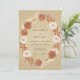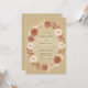 Este design apresenta uma paleta quente de ferrugem, terracota e creme contra um fundo terroso de bege. Um arranjo delicado de rosas e dálias em aquarela é acentuado por uma folhagem outonal suave e folhas em estilo seco. A estética captura um clima aconchegante e rústico, perfeito para um evento ao ar livre ou com tema de colheita. Seus elementos botânicos inspirados no vintage evocam um senso de elegância orgânica.