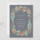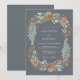 Este design apresenta um fundo cinza carvão profundo que contrasta lindamente com uma exuberante coroa de rosas em tons quentes de cobre e samambaias em verde sálvia fresco. A arte em aquarela cria uma atmosfera sombria e sofisticada ideal para um evento sazonal elegante. Folhas botânicas delicadas e acentos folhosos fornecem uma aparência rica e texturizada para uma estética refinada.