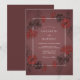 Este design apresenta uma estética sombria e dramática perfeita para um evento outonal ou de inverno. A paleta de rosa profundo é adornada com esboços artísticos de papoulas em tons de carmesim e carvão. Uma atmosfera sofisticada é criada através do uso de elementos florais escuros e cores terrosas e suaves.
