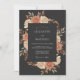 Este design dramático apresenta uma paleta de carvão, terracota e tons quentes de pêssego. Rosas sombrias são combinadas com folhagem outonal e delicadas bagas para um visual sofisticado. A obra de arte captura uma estética de colheita vintage, perfeita para um evento romântico à noite.