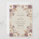 Este design apresenta uma paleta quente e terrosa de malva suave e creme. Rosas delicadas em aquarela são combinadas com grama de pampas aérea e folhagem seca para criar uma estética boêmia romântica. O fundo é um bege suave, dando um toque vintage ao arranjo botânico como um todo.