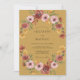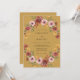 Este design apresenta um rico fundo de ocre adornado com um arranjo exuberante de flores em aquarela. Rosas profundas de burgundy e rosa beijo estão entrelaçadas com ranúnculos terrosos de âmbar e folhagens de verde-sage. A paleta quente cria uma atmosfera elegante perfeita para um casamento de outono ou tema de colheita.