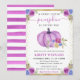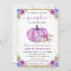 Linda abóbora roxa, branca e azul caem design com flores e dourada confetti