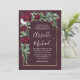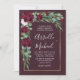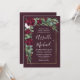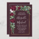 Apresenta um fundo de lavagem de vinho ou de água a jato de lama com elegante dólar prateado e folhas de eucalipto semeadas. As flores marsala/burgundy estão entrelaçadas no eucalipto. Design também apresenta uma borda dourada impressa.