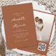 Surpreenda seus entes queridos com este convite elegante para o casamento, com fundo de confiança em terracotta, foto personalizada, texto e código qr de sua escolha. Adicione facilmente seus próprios detalhes clicando na opção "personalizar".