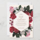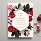 Este convite floral de aquarela apresenta rosa, peônias de flores em marrom rústico, magenta, marfim e cor vermelha com padrão de folhas botânicas e um texto mínimo..Personalize o convite com o nome do destinatário. Coleção de casamentos florais clássicos perfeita