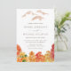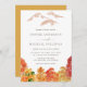 Convide convidados com este convite de casamento no outono. Apresenta ilustrações em aquarela de uma paisagem de queda com árvores laranja, verde e vermelha. Personalize adicionando nomes, data, hora e outros detalhes. Este convite para a floresta no outono é perfeito para os casamentos outono.