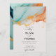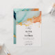 Um modelo de convite de casamento outono que apresenta uma cor d'água pintada, abstrato, com ondas com efeito de derrame de tinta dourada (o ouro é um efeito digital, não uma folha real!). Clássico e elegante, simples e moderno, é uma escolha adorável para um casamento na praia de outono - ou simplesmente um casamento de outono para um casal que ama cores de cor de rosa, laranja e queda e design moderna.