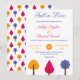Este elegante convite de casamento outono é perfeito para um casamento moderno no outono. O simples design apresenta árvores coloridas com uma elegante tipografia colorida sobre um fundo branco