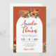 Romântico Watercolor Casamento outono Invitation with Arch Design Diga "Eu faço" em estilo com este encantador convite a casamentos outono. O design apresenta um belo arranjo floral de aquarela em tons cor de laranja quente e de ouro, adicionando um toque de elegância rústica. A coroa floral fica sobre um design de arco único, criando um olhar cativante e moderno. Este convite apresenta um fundo de terracota suave, acentuando os elementos florais vibrantes e dando uma sensação quente e convidativa. Os nomes do casal são exibidos elegantemente em uma fonte sofisticada de script.