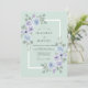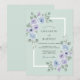 Um fundo suave de verde menta fornece uma base serena para rosas em aquarela em tons de lavanda e azul poeirento. Folhas delicadas de eucalipto e folhagens prateadas adicionam um toque exuberante e orgânico à obra de arte. Essa estética romântica e etérea é perfeita para um evento sazonal de primavera ou verão.