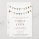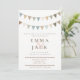 Celebre seu dia especial com este convite de casamento macio e na moda, com um estilo de bunting pintado à mão em tons pastel mudados. O layout minimalista e o esquema natural de cores oferecem uma estética encantadora e neutra em termos de gênero perfeita para casamentos ao ar livre, celeiro ou jardins relaxados. Com fontes elegantes e detalhes gentis, esse convite combina com casais modernos em busca de uma vibração quente e subestimada.