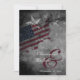 Este design de convite para casamento patriótico apresenta uma bandeira americana moldada com estrelas decorativas e uma cinza e fundo negro de grunge. Este Convite é perfeito para Casamentos Patrióticos, Militares e 4 de julho. ^