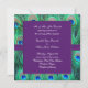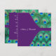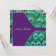Elegante convite de casamento quadrado com penas de pavão roxo esmeralda, azul real e azul turquesa. Convites de casamento pavão roxo. Personalize com sua escolha de estilo de fonte e cor da fonte.