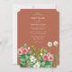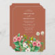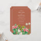 Uma bela design de casamentos de flor silvestre e Periwinkle. Um design único que usa floral botânico da safra rustica. Um elegante design retro floral de terracotta laranja queimado com um traço de verde. Um design de convite para casamento de flor silvestre e Periwinkle com elementos modernos. Também estão disponíveis itens de papelaria de casamento e outros formatos de convite de casamento.