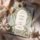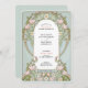 Este gracioso convite para o casamento mostra lírios cor-de-rosa macio, flores brancas delicadas, e folhagem pastel tecida num quadro de Arte Nouveau ornamentado. O design floral envolve o texto central num arco refinado, belamente colocado sobre um fundo verde macio. Inspirados pela elegância decorativa do início do século 20, os intrincados detalhes de fronteira e a design monogramada evocam um senso de romance eterno. Perfeito para casamentos de primavera, cerimônias de jardim, ou amantes da estética da safra floral. Personalize este convite para uma celebração de casamento que floresce com encanto artístico.