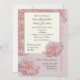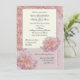 Lindas peônias cor-de-rosa sobre um fundo branco e rosado acentuado com texto de cinza. Convites de casamento elegantes lhe dão um lugar específico para sua recepção. Personalize o texto conforme necessário.