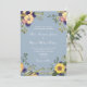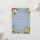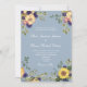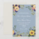 Convite de casamento elegante, country, rústico, botânico, azul poeira com flores de aquarela boho, girassóis amarelos e folhagens.