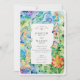 Convide seus convidados para uma celebração verdadeiramente única com este convite de casamento, vibrantemente ilustrado em um estilo que lembra os mosaicos icônicos de Antoni Gaudí, particularmente aqueles encontrados em Park Güell, Barcelona. A frente apresenta um lagarto de mosaico (ou salamandra) lúdico e elementos arquitetônicos fantásticos, ao lado de uma flor brilhante estilizada de laranja e amarelo, todos colocados contra um pano de fundo espantoso de azulejos coloridos e irregulares em tons brilhantes de azul, verde, roxo, laranja e amarelo. O reverso, para "Os Detalhes Mais Finos", continua o tema do mosaico cativante, mostrando o lagarto branco de forma mais proeminente junto com flores elegantes estilizadas, laranja e amarelo, e motivos circulares únicos. Todo o design é renderizado em uma bela técnica de aquarela, dando aos padrões do mosaico uma qualidade macia, artística e luminosa. Este convite é perfeito para um casamento de destino em Barcelona, uma celebração com temas artísticos, ou para casais que aderem cores ousadas, expressão artística única, e o charme caprichoso do Modernismo Catalão.