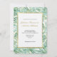 Folhas tropicais verdes, azuis e amarelas Watercolor Casamento Havaí inspirado com sotaques dourados