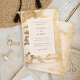 Convite de casamento elegante com uma design moderna minimalista. Apresentando um esquema de cor de creme bege, fundo de abstrato com acentos de ouro falsos e tipografia de na moda que define o tom para o seu dia especial.