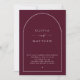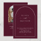 Faça um tom romântico e sofisticado com este convite de casamento burgundy escuro, desenhado num formato de arco minimalista com fotografia personalizável de volta e tipografia elegante. O rico fundo burgundy traz profundidade e luxo, fazer-o uma escolha ideal para o outono e casamentos no inverno, recepções vinícolas ou comemorações elegantes da noite. O verso inclui espaço para sua foto favorita junto com um código QR para acesso direto RSVP ou ao site de casamento. Disponível como convites impressos ou download digital para impressão em casa, este design combina elegância do eterno com funcionalidade moderna.