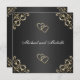 Convite de Casamento Preto com Recortes Dourados Recortes celtas dourados com corações. A cor da escrita também pode ser personalizada ou para alterar qualquer detalhe.