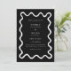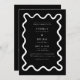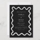 Simples e caprichoso convite de casamento, com uma linha desenhada à mão como quadro. Você pode adicionar uma foto no verso com a mesma linha ondulada. Fundo preto.