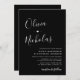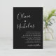 Monograma com Nome de Monograma Moderno de Caligrafia Chic Minimalista Código QR Tudo em Um Cartão de Convite de Casamento Preto. Apresentando um nome monográfico enorme em um estilo elegante, escrito à mão, com letras maiúsculas e minúsculas, escrito em branco sobre fundo preto. Um pouco de emoção entre os primeiros nomes. O lado inverso do convite contemporâneo consolida todos os "detalhes do casamento" essenciais normalmente encontrados em cartas individuais dentro do pacote do casamento. Este convite de casamento moderno e econômico inclui um modelo gráfico de código QR no verso, que você pode personalizar com seu próprio código (ou remover se não for necessário). É fácil personalizar. Ao incorporar um código QR, você pode salvar papel enquanto ainda permite que os convidados acessem detalhes, RSVP ou ambos. Crie um ambiente caloroso e convidativo para os seus hóspedes participarem na alegria do seu dia especial. Faça seu pedido agora e garanta que sua celebração de casamento seja realmente inesquecível!