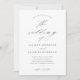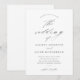 Um convite de casamento preto e branco simples e elegante com detalhes de caligrafia e texto clássico. Clique no botão de edição para personalizar este design.