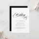 Um belo convite para o casamento entre preto e branco. Linda escrita preta e elegante texto personalizável em branco de marfim. A parte traseira é exibida em preto sólido (você pode personalizá-la para qualquer cor que desejar). Excelente para comparecimento virtual online/transmissão em direto de casamentos. Convidamos você a visitar nossa Zazzle Store, Simon & Grace, para encontrar produtos e muito mais. Entre em contato conosco se precisar de assistência.
