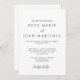 Este elegante design de convite de casamento apresenta uma estética limpa e minimalista com uma paleta clássica de preto e branco. O eterno e a tipografia sofisticada incluem uma mistura de fontes modernas de serifa e escrita à mão, criando um aspecto equilibrado e refinado. Essa modelo versátil é perfeita para casais que apreciam elegância simples e se adequam a vários estilos de casamento, do clássico e tradicional ao contemporâneo e chique. O layout limpo garante que todos os detalhes importantes se destacem, incluindo a data do casamento, a hora e o local. Personalize facilmente esta design para criar um convite bonito e memorável para o seu dia especial.