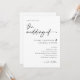 Defina o tom para sua celebração com este design preto e branco moderno com um elegante roteiro manuscrito. O estilo de caligrafia cria um aspecto ousado, mas refinado, enquanto o layout limpo o mantém fresco e em tendência. Perfeito para casais que adoram uma estética contemporânea, este convite de casamento manuscrito é fácil de personalizar com seus próprios detalhes, fontes e cores para corresponder ao seu estilo de evento.