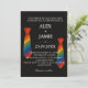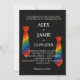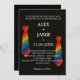Negrito, na moda e cheio de orgulho — este convite de casamento gay moderno apresenta duas vibrantes gravatas arco-íris contra um fundo preto elegante. Uma maneira perfeita de anunciar seu dia especial com elegância e amor. Totalmente personalizável com seus nomes, data e local. Ideal para casais LGBTQ+ celebrando a unidade e o orgulho no estilo.